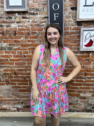 Dear Scarlett Dress Pink and Turquoise Floral LIZ3TDRESS- C0004