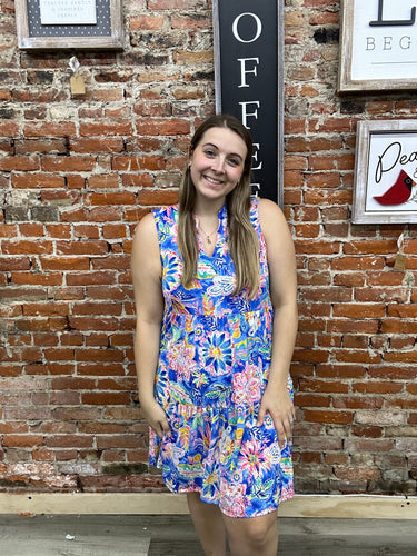 Dear Scarlett Dress Blue and Yellow Floral LIZ3TDRESS- C0009