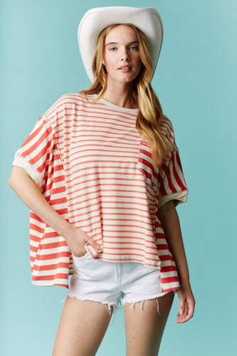 Fantastic Fawn Roundneck Stripe Colorblock Oversized Pocket Top