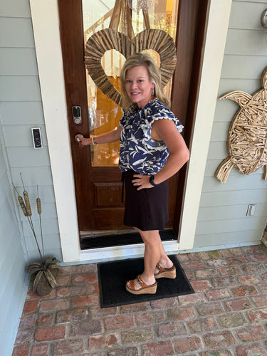 Array Oddi Leaf Printed Flutter Sleeve Top
