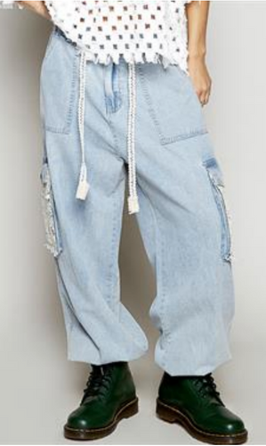 Array POL Denim Pants with Cargo style pockets, lace detail