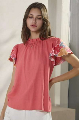 Array Oddi Embroidered Keyhole Blouse