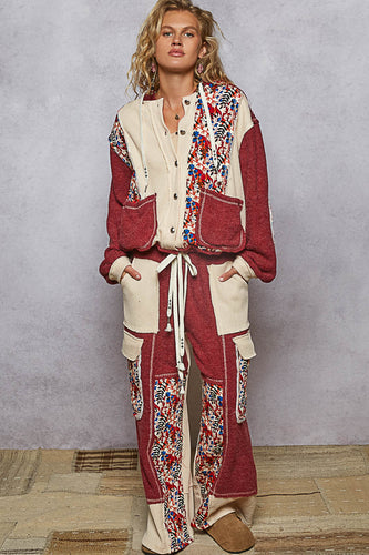 POL Balloon Sleeve Quilted Detail Floral Knit Hoodie Jacket