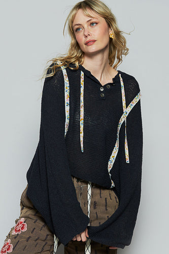 POL Chenille Striped Oversized Hoodie Sweater