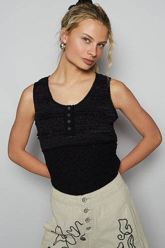 POL Date Night Tank with Lace Detail- Black