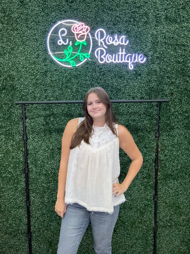 POL crochet high neck sleeveless top