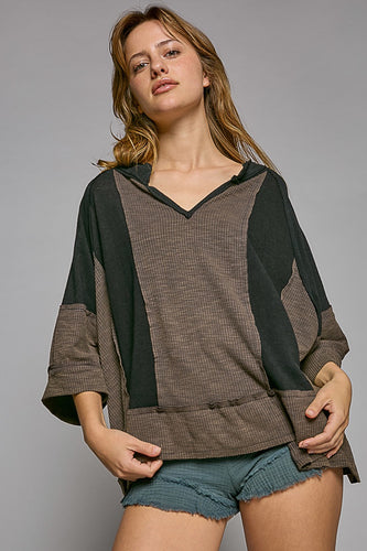 POL Cut Sew Multi Fabric Hooded Combo Shacket