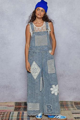 POL Crochet Contrast Patch Woven Overalls