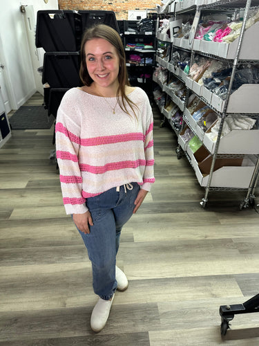 POL Floral Patch Colorblock Stripe Point Rib Band Sweater Pants