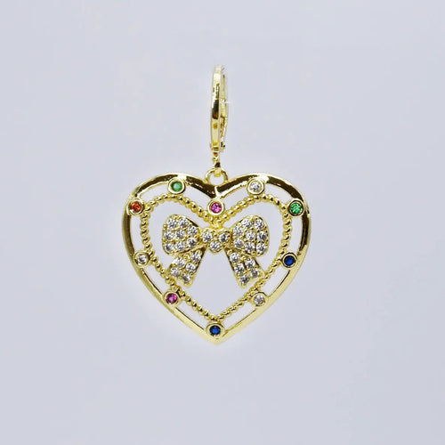 Treasure Jewels Big Heart Bow Charm In Silver & Gold