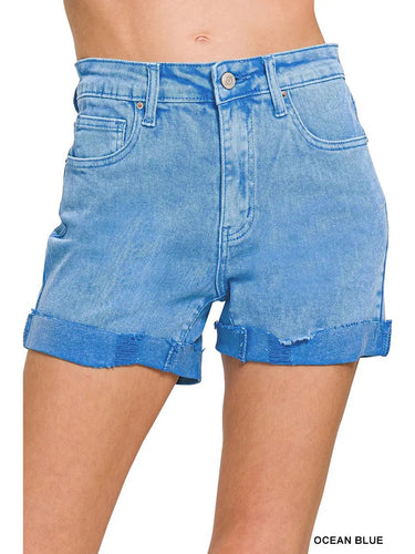 Zenana Acid Wash Cuffed Denim Shorts