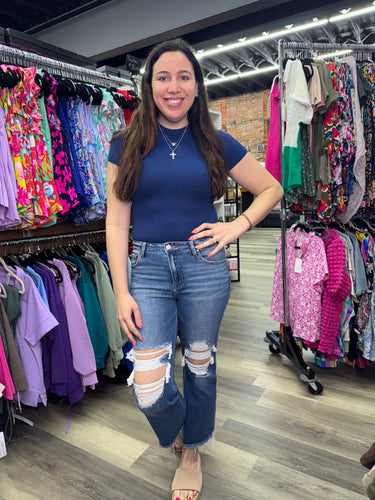 Butterfly Embroidered Jogger Pants – Navy | Vintage French Terry