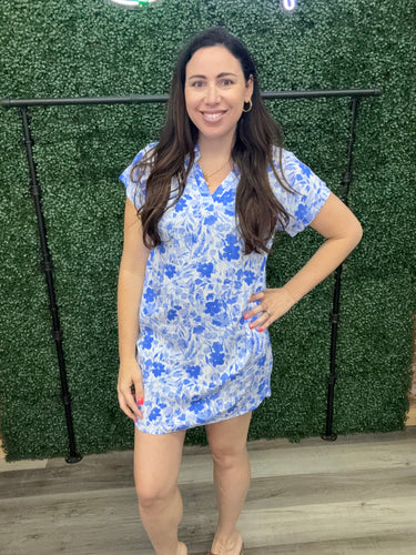 Dear Scarlett Dress Blue and White Floral LIZ3TDRESS- C0001