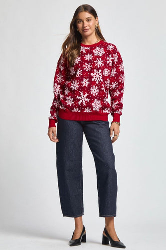 Dear Scarlett Christmas Sweater- Red/Snowflake