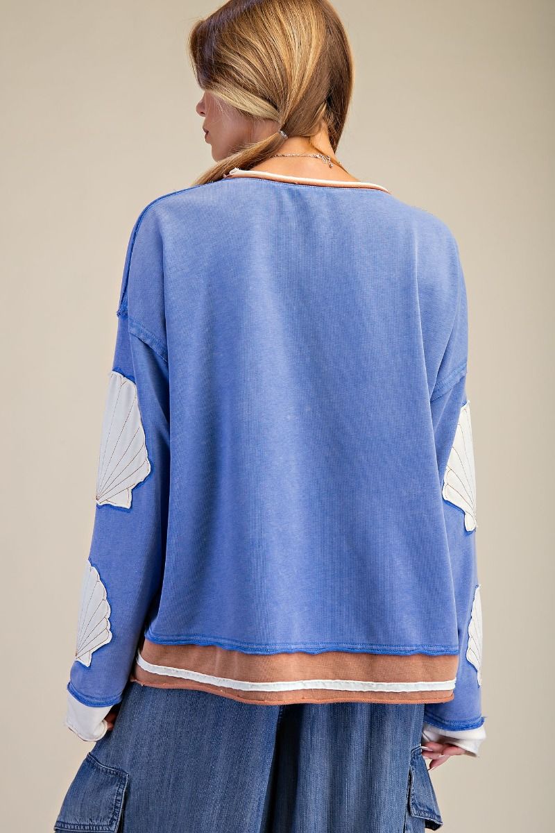 Easel Shell Patches Washed Terry Pullover- Day Blue – Coastal Sweatshirt – L. Rosa Boutique