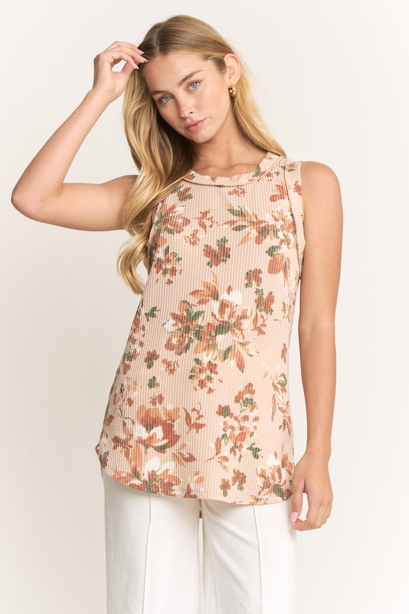 Heimish Sleeveless Ribbed Tank - Taupe Floral