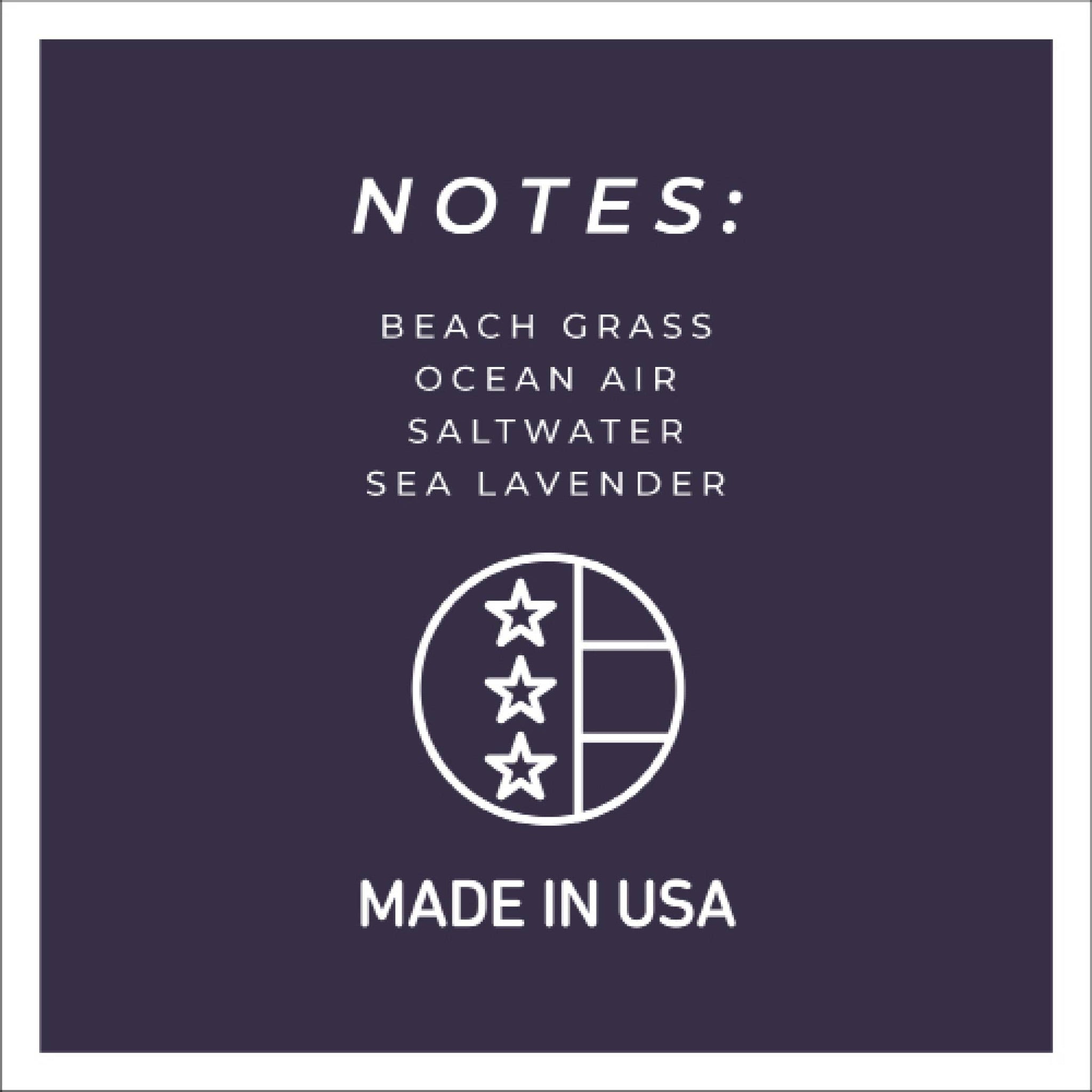 Bathe in the dark waters of the Pacific Ocean with saltwater mist, sea lavender & beach grass. 6oz / Single Wick / Burn Time: 30 hours Dimension: 2.5"w x 3.25h Available options: Black Lid or Copper Lid