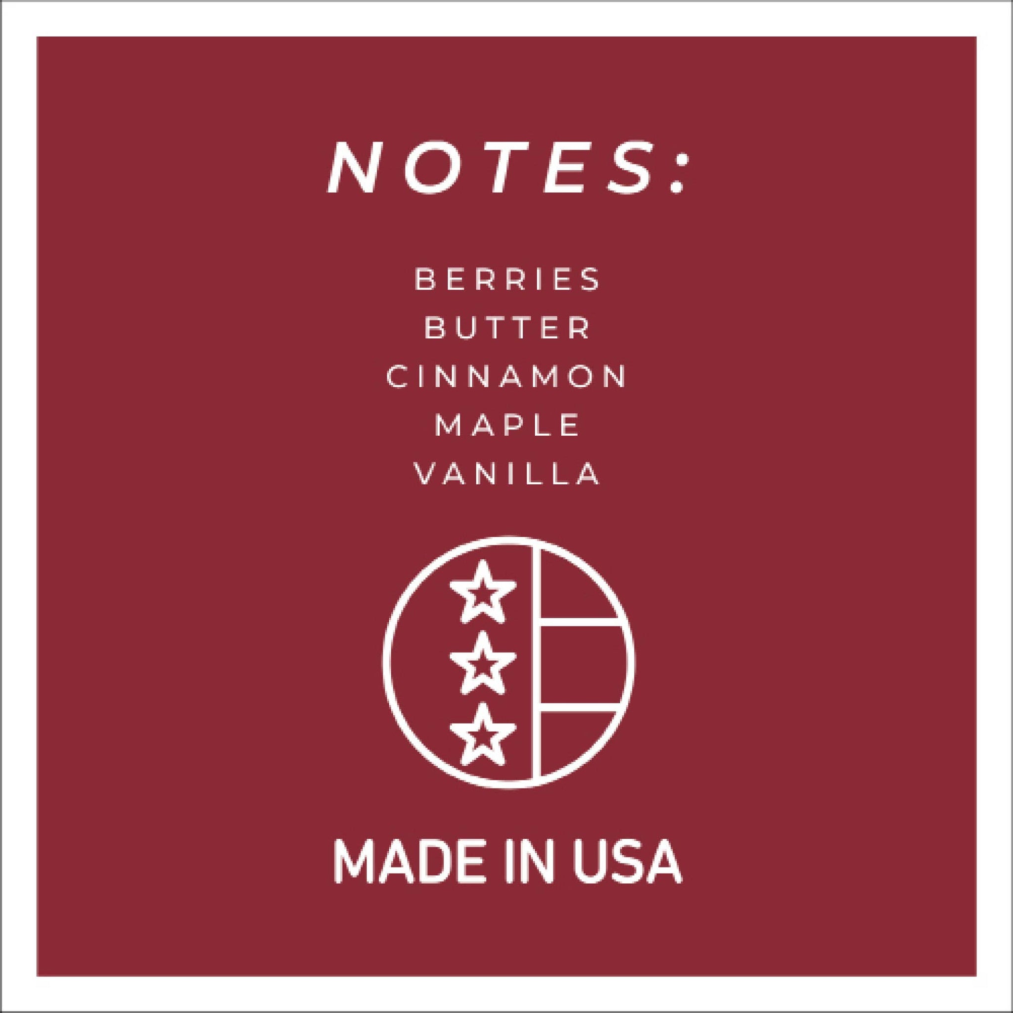 Festive, fresh picked mixed berries, baked with cinnamon, vanilla & butter maple oats.  6oz / Single Wick / Burn Time: 30 hours Dimension: 2.5"w x 3.25h Available options: Black Lid or Copper Lid