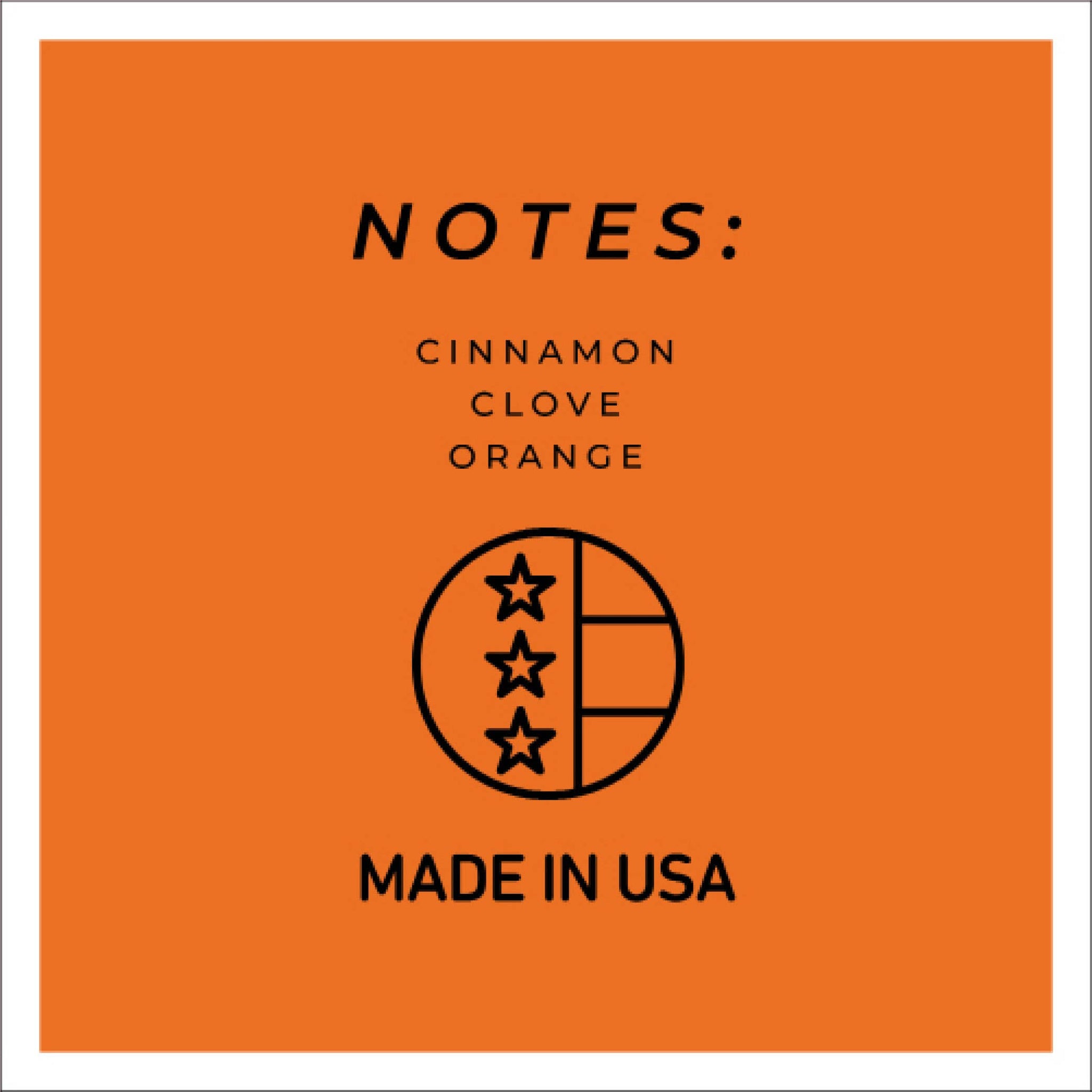 Cinnamon & cloves draped with a layer of fresh orange. 22oz / Double Wick / Burn Time: 125 hours Dimension: 4.”75w x 4h Available options: Black Lid or Copper Lid