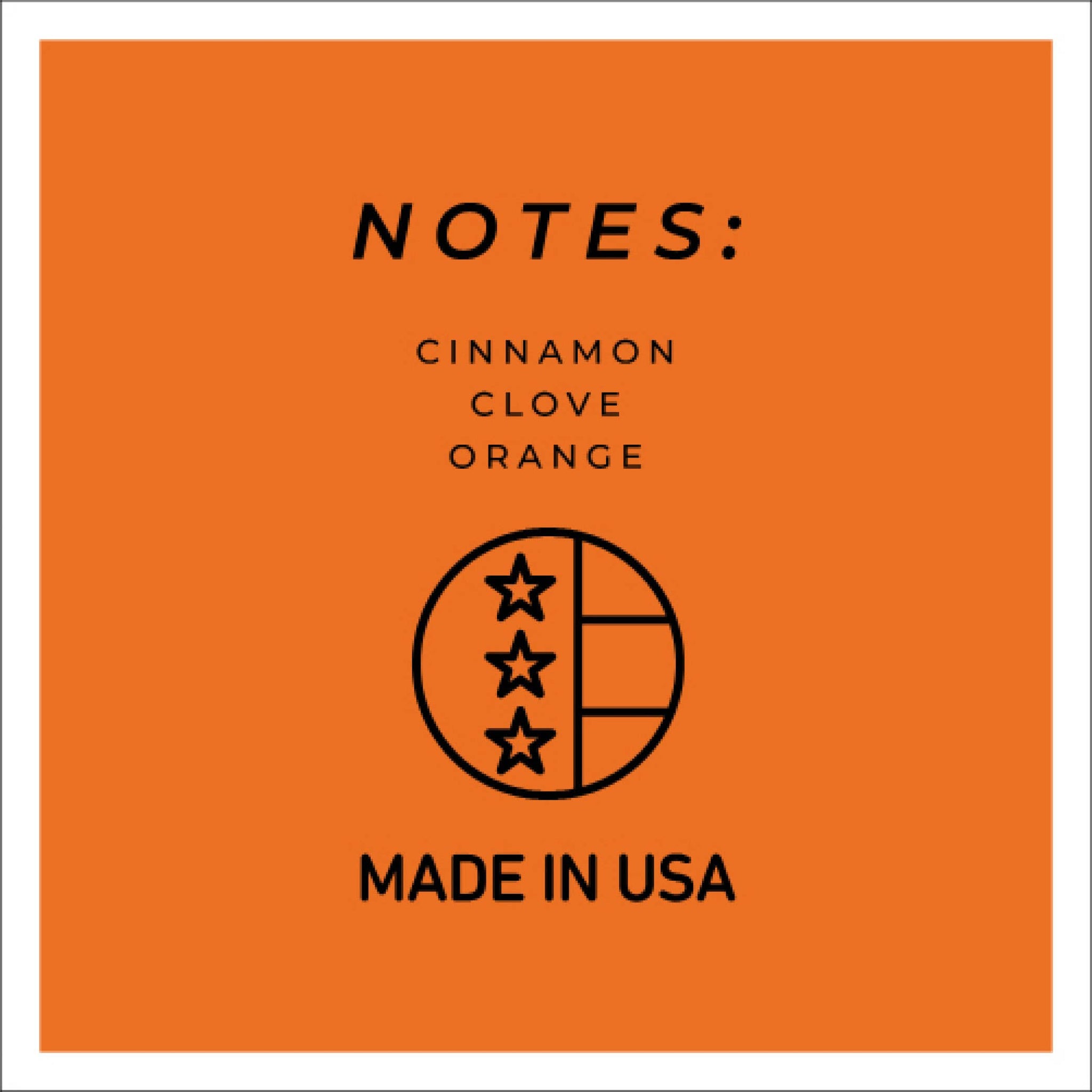 Cinnamon & cloves draped with a layer of fresh orange. 34oz / Double Wick / Burn Time: 150 hours Dimension: 4.”75w x 5.5h Available options: Black Lid or Copper Lid