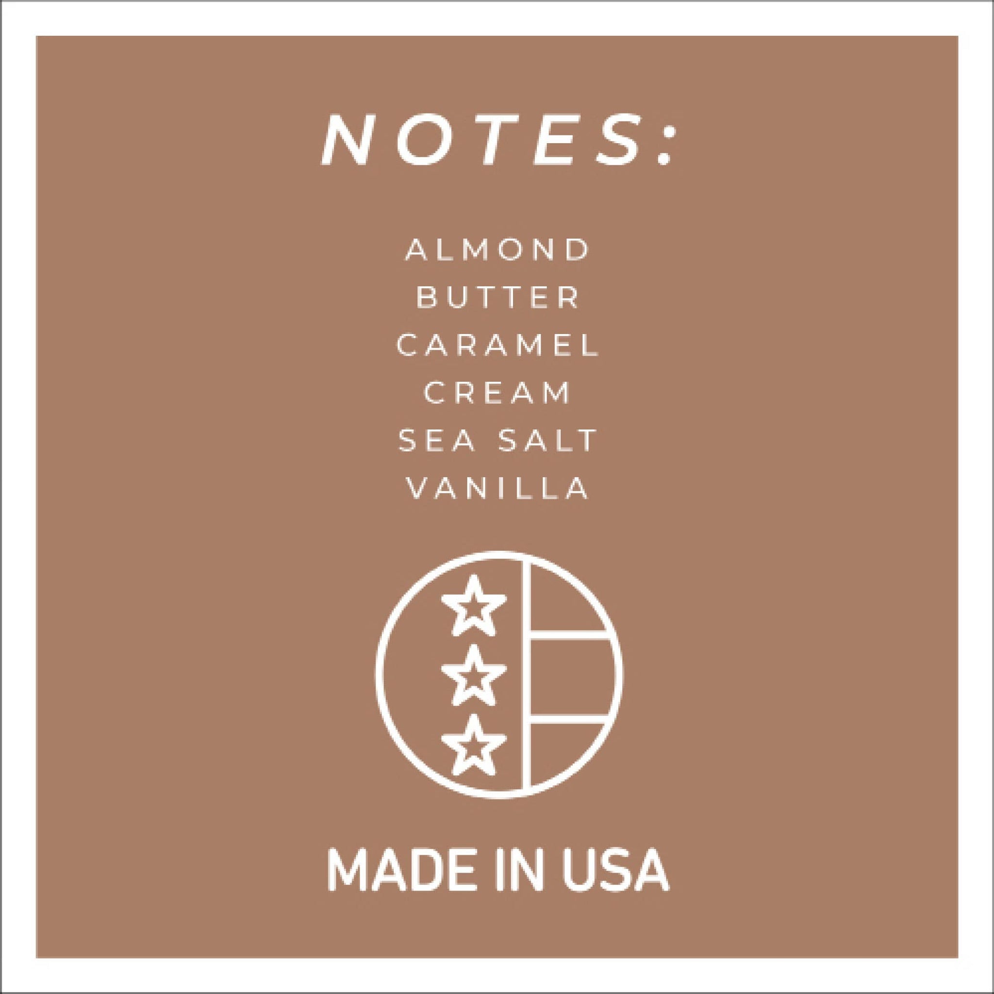 Fresh baked waffle cones coated in salted caramel & finished with sugary whipped cream. 34oz / Double Wick / Burn Time: 150 hours Dimension: 4.”75w x 5.5h Available options: Black Lid or Copper Lid
