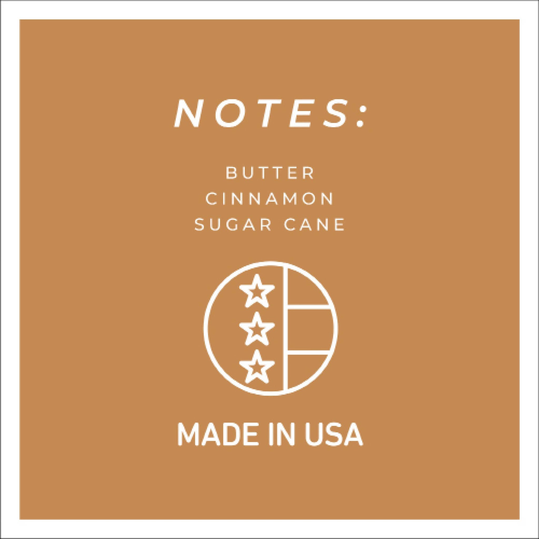 The warm, buttery goodness of freshly baked cinnamon sugar cookies. 34oz / Double Wick / Burn Time: 150 hours Dimension: 4.”75w x 5.5h Available options: Black Lid or Copper Lid