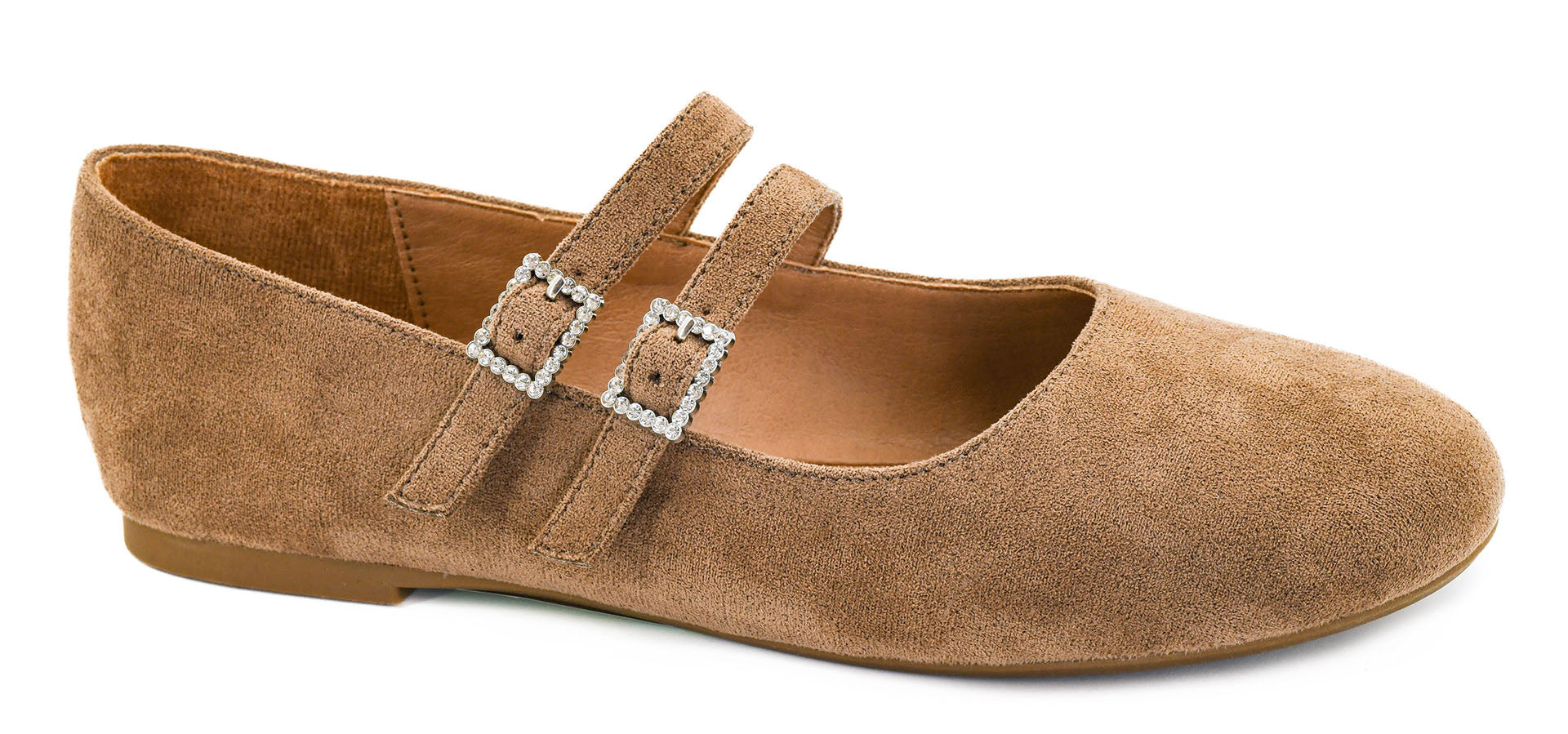 Experience effortless style and comfort with the Corky's Own It ballet flat. Crafted from soft faux suede, these flats feature double black buckle straps for a secure fit and a chic look. The rounded toe design ensures all-day comfort, making them perfect for any occasion where you want to feel confident and comfortable. Step out with ease and own your day in these versatile flats.