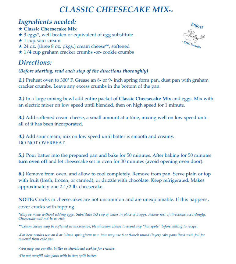 Country Home Creations - Classic Cheesecake Mix