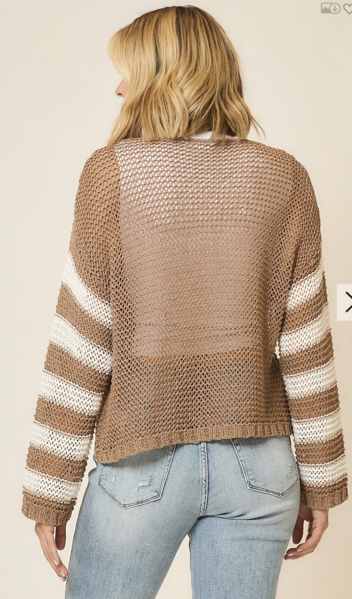 Cozy Co Stripe Sleeve Pullover Sweater – Light Knit