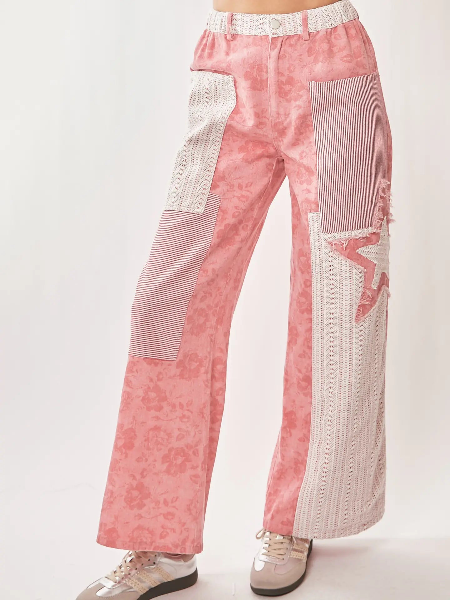 Looking for casual pants with a touch of charm? The Davi & Dani Floral Star Patch Washed Pants are made from a soft cotton-viscose blend with a relaxed silhouette and washed finish for that lived-in look you’ll love. Floral star patch details give them a playful, boutique feel that makes everyday outfits stand out.