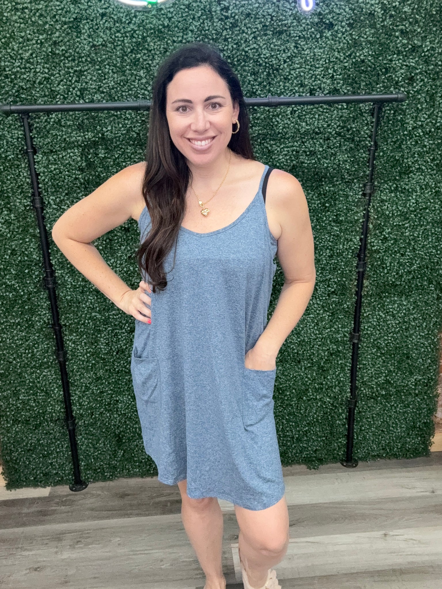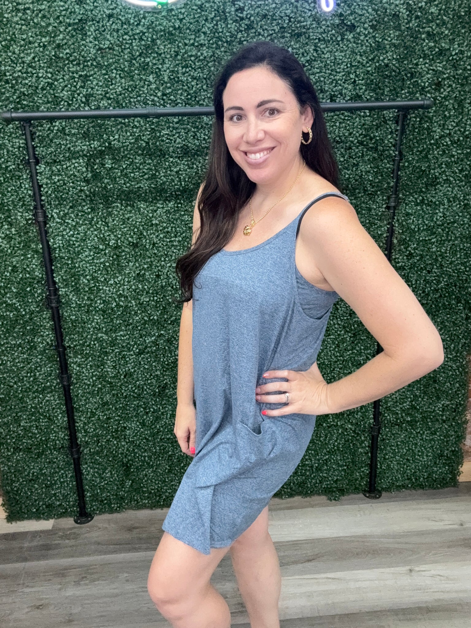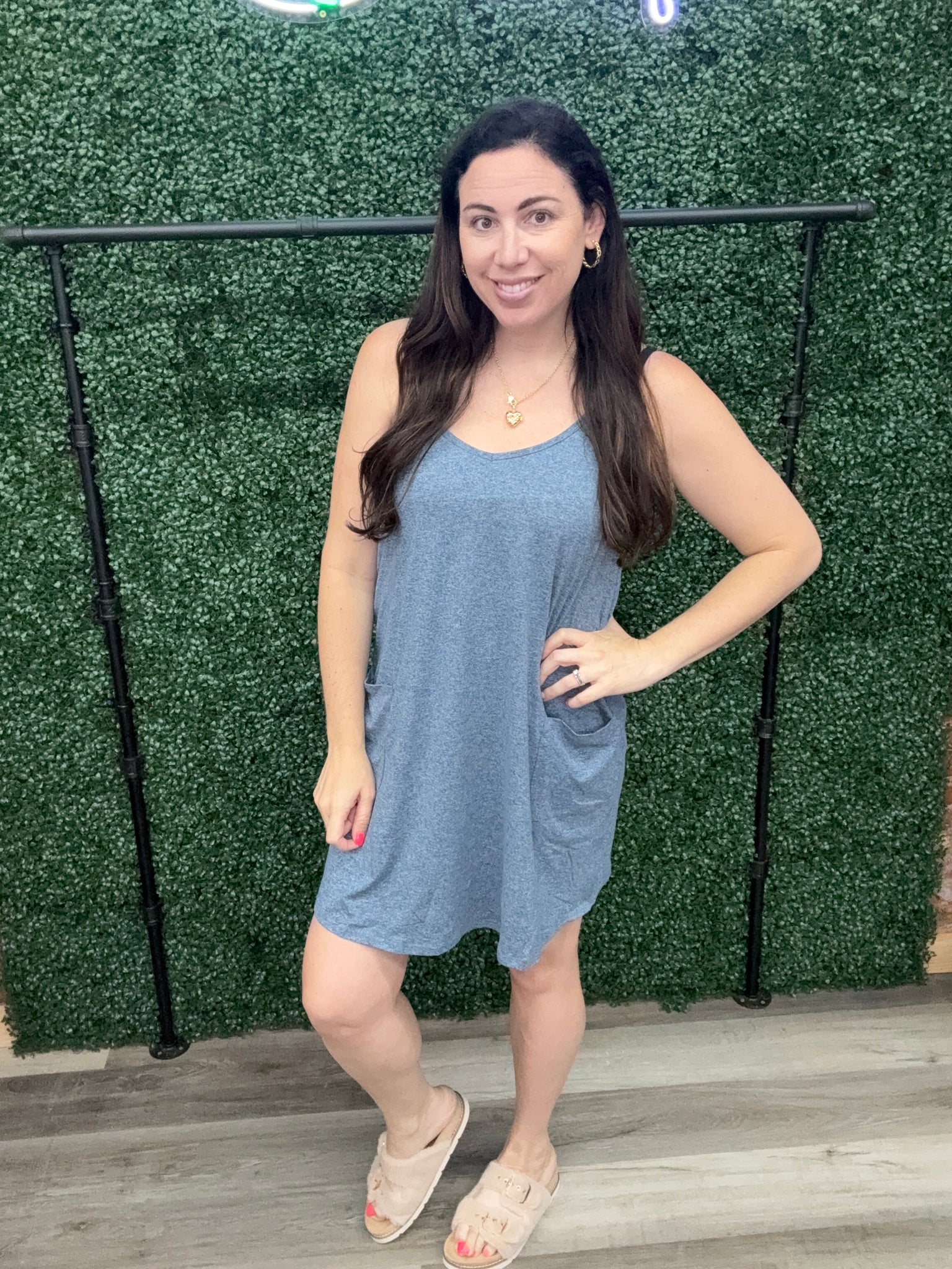 This Cozy Co Dual layered sleeveless mini dress features a dual-layered design and convenient patch pockets for a stylish and functional option. Made for maximum comfort, this dress is perfect for any occasion.