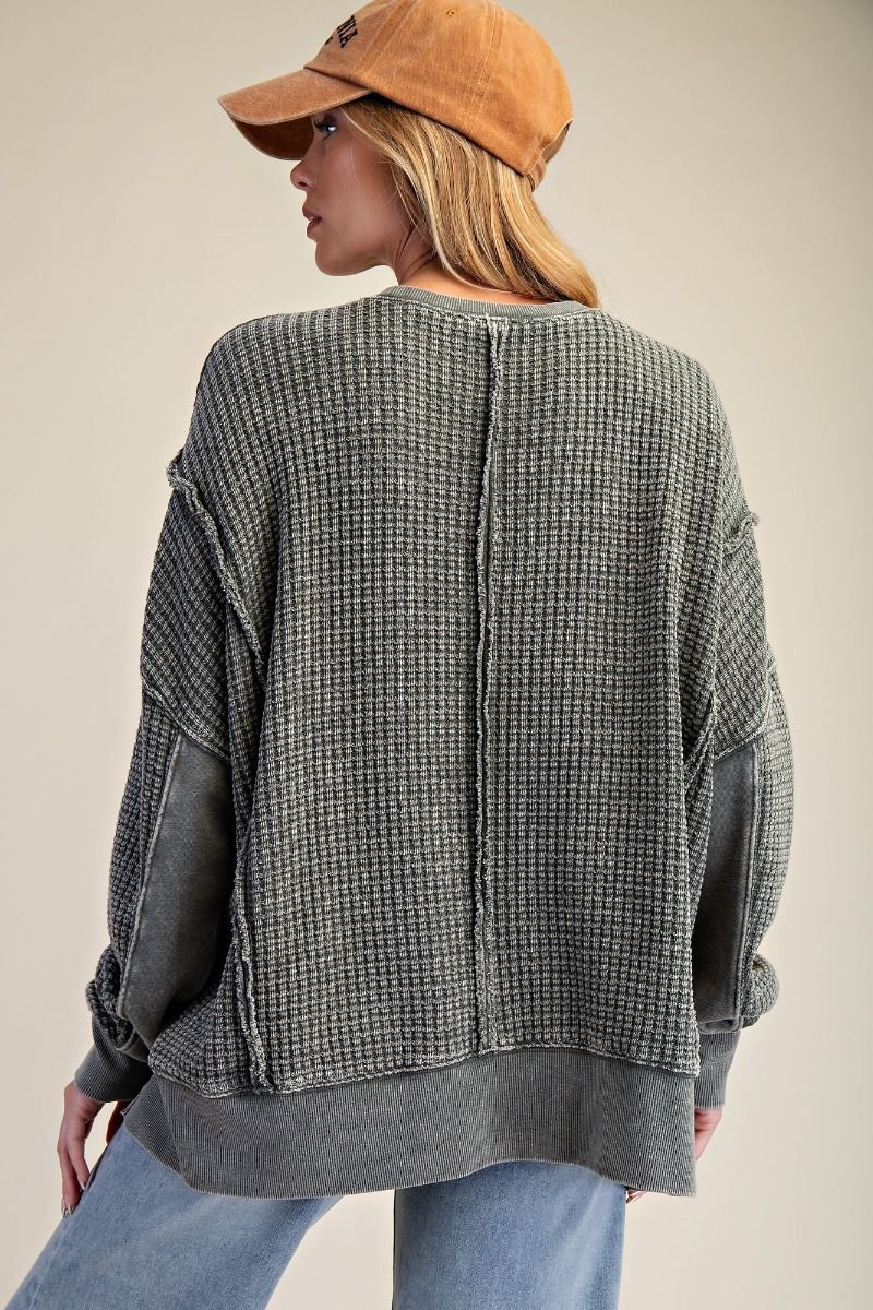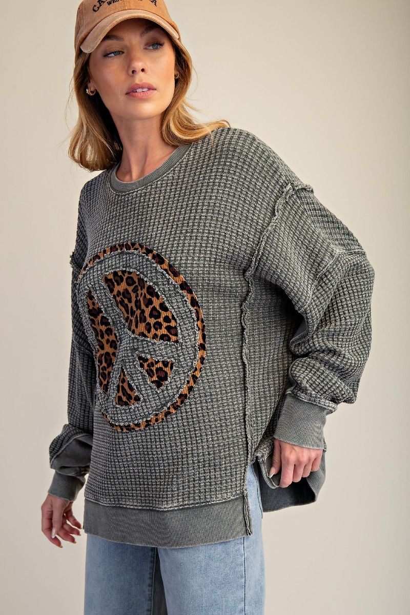 Easel Peace Patch Washed Thermal Pullover – Cotton Blend Knit