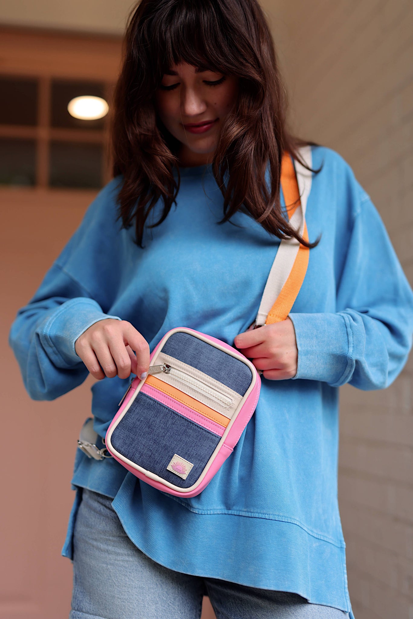 Jadelynn Brooke - Crossbody Purse- Denim Print (Denim/Cream/Pink)