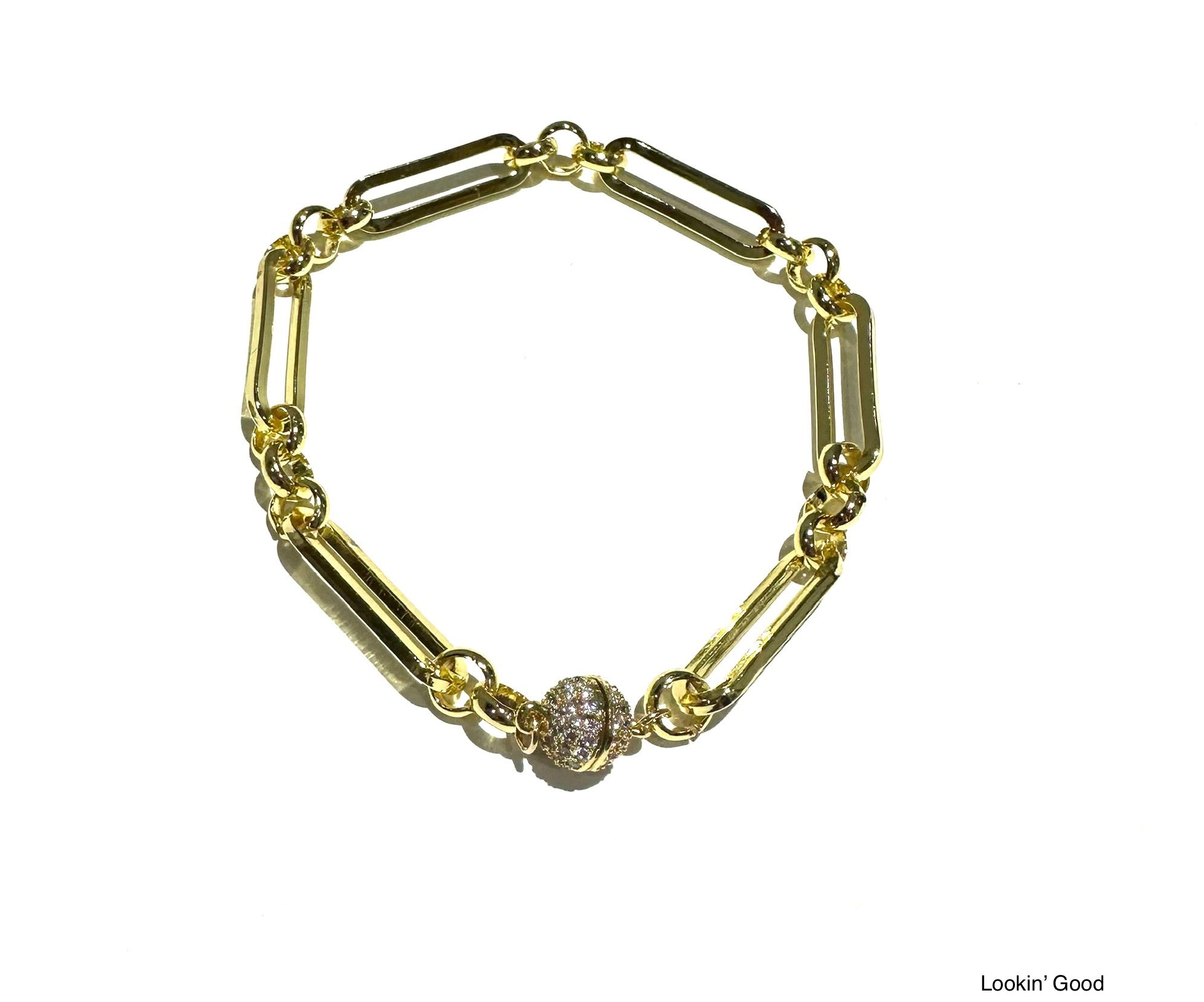 Elevate your wrist game with the Lookin’ Good Magnet Bracelet. Featuring bold paperclip-style links and a sparkling pave’ magnetic clasp, this bracelet combines fashion and function in one chic design. Easy to fasten and stylish to wear, it’s the perfect accessory to stack with your favorites or let shine on its own.