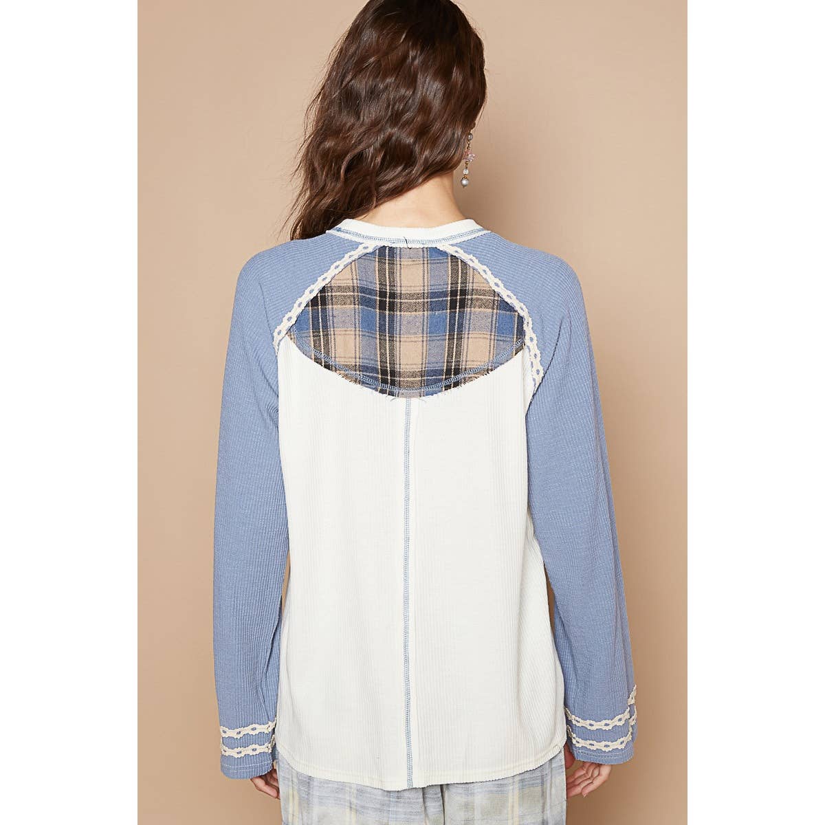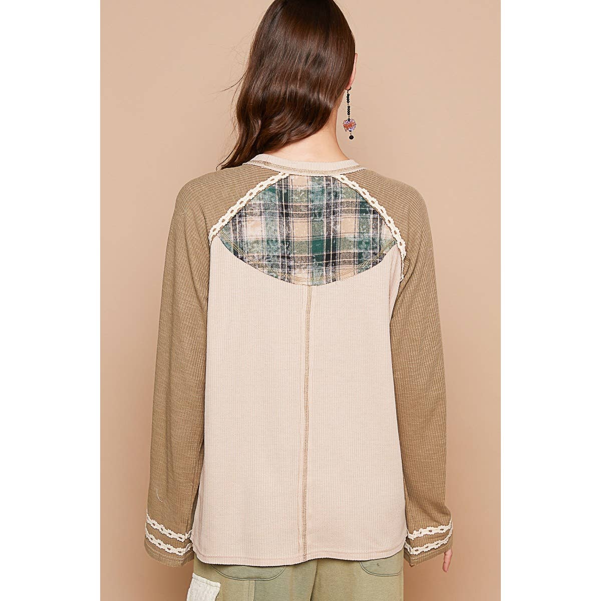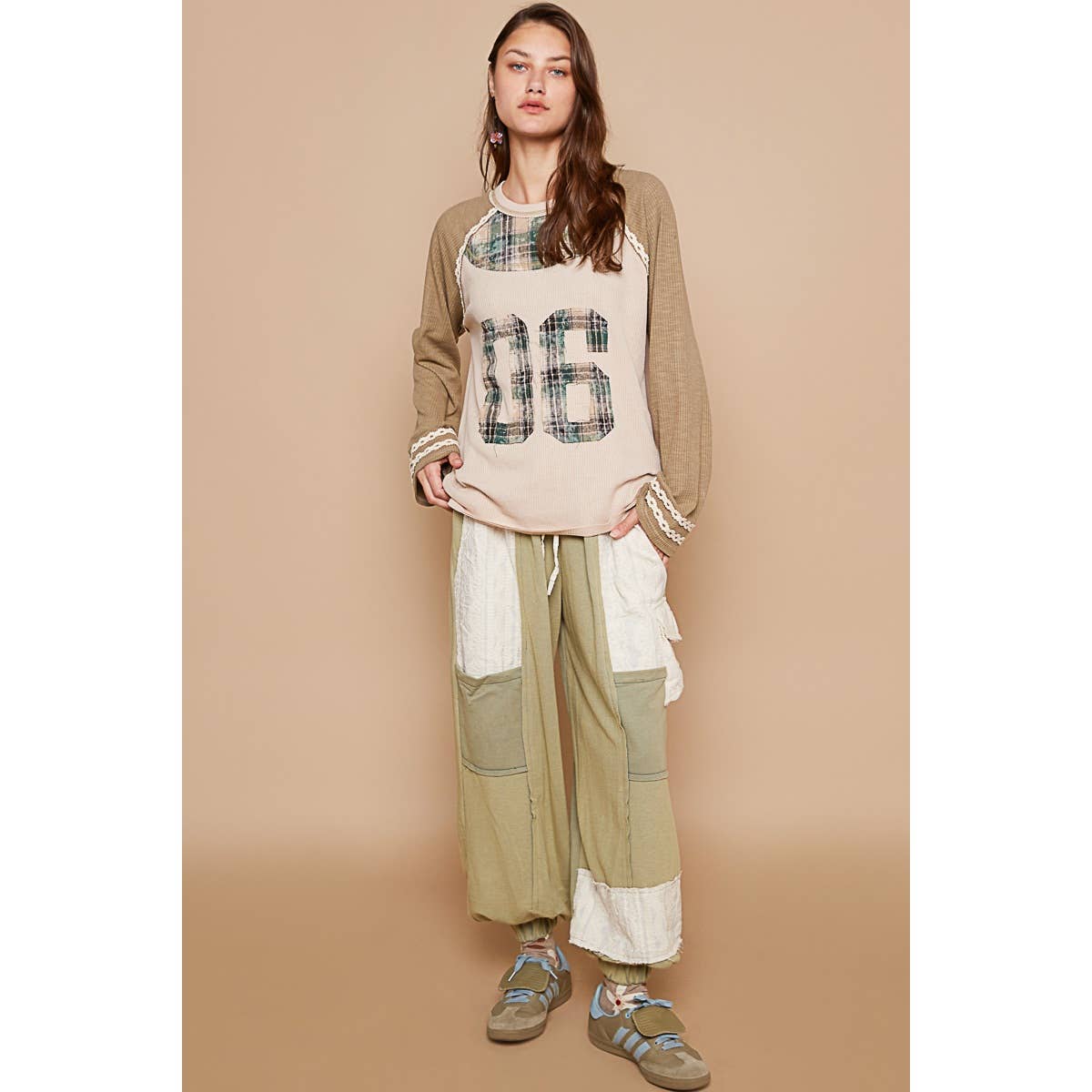 POL Plaid Patch “06” Graphic Raglan Top — Comfy, Cute & Casual