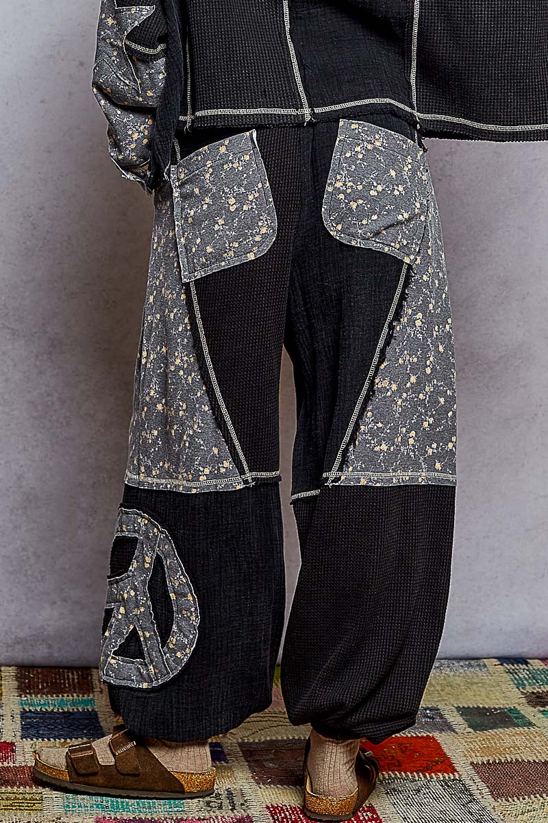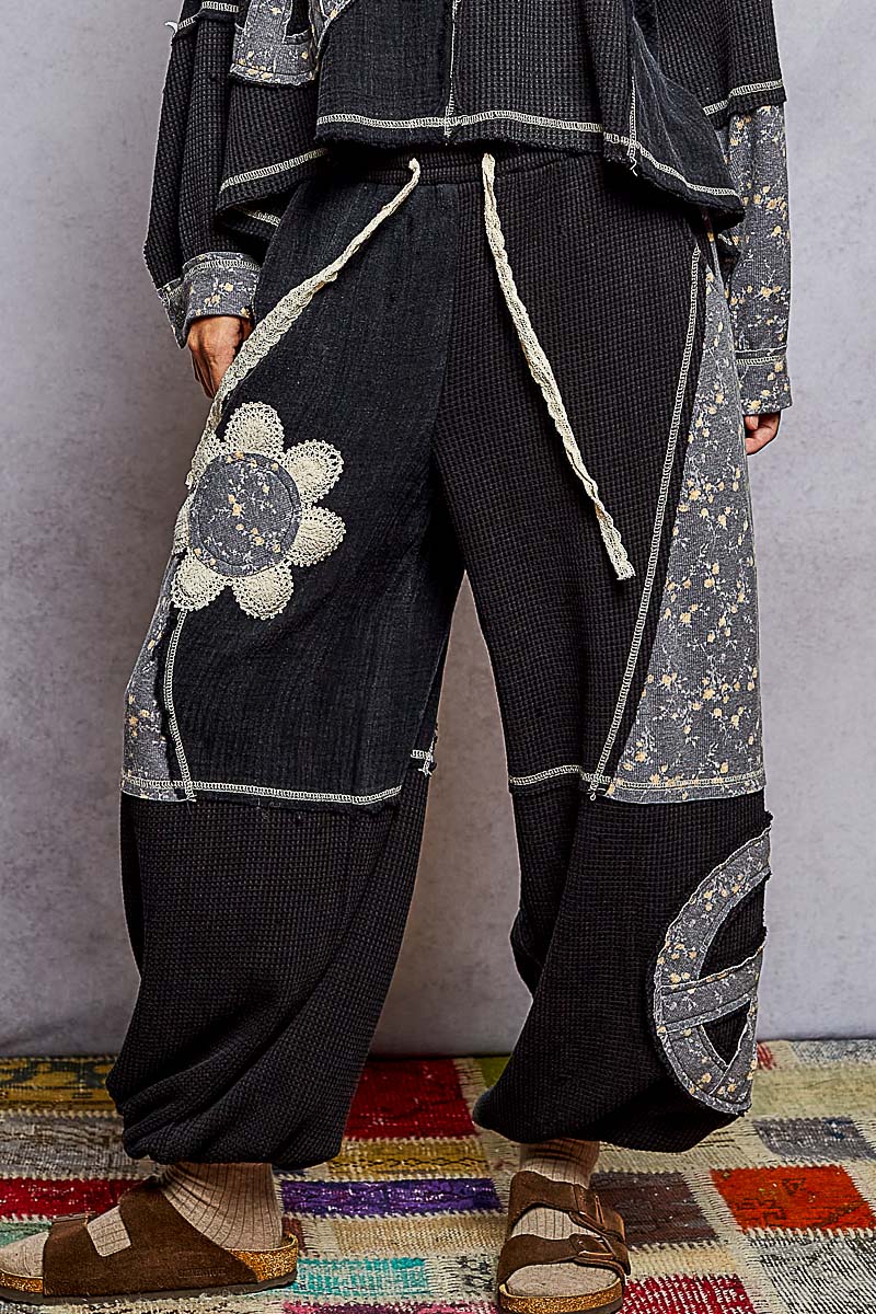 POL Double Gauze Mix Patch Floral Pattern Thermal Knit Pants
