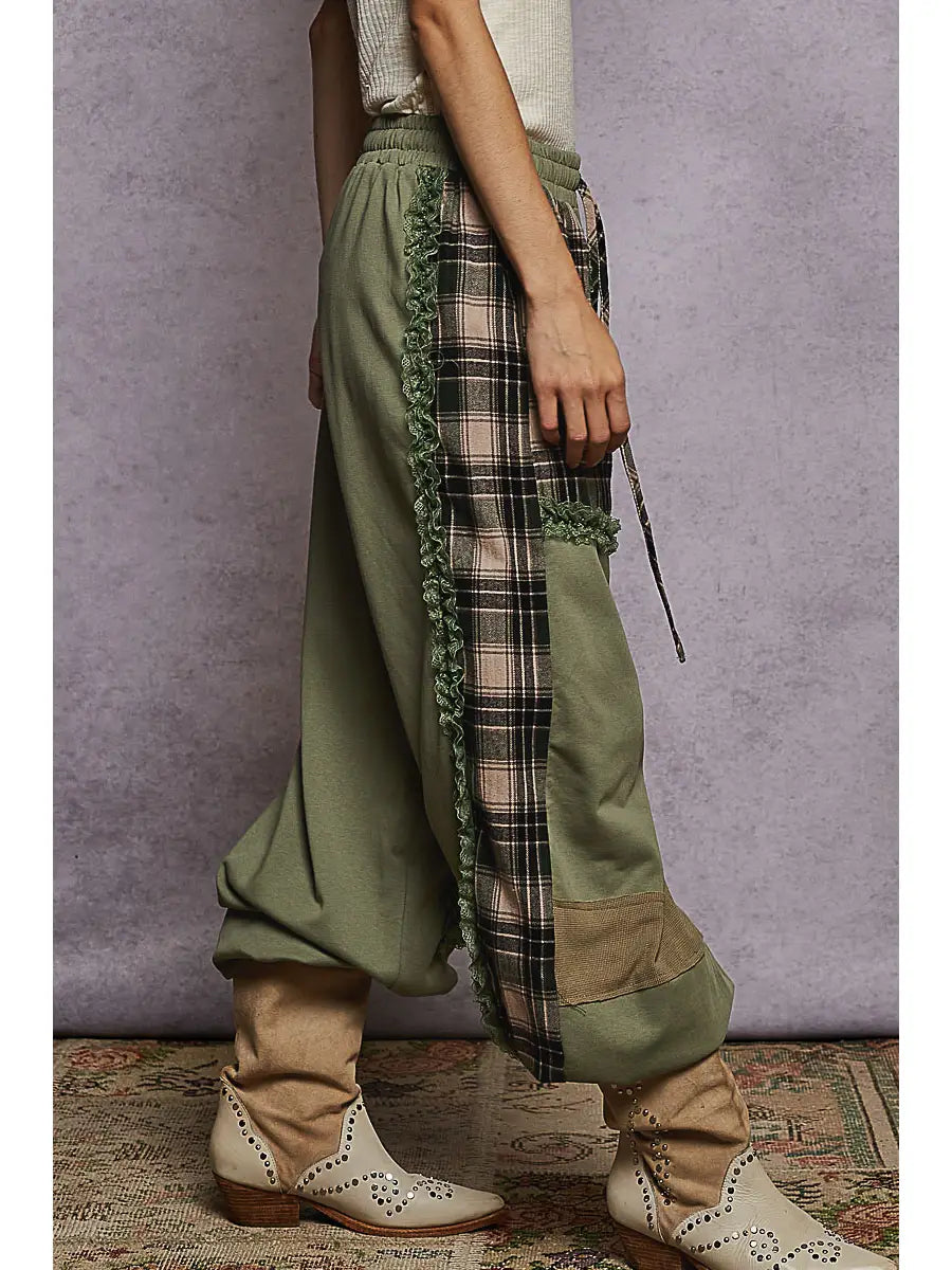 POL Plaid Contrast French Terry Jogger Pants
