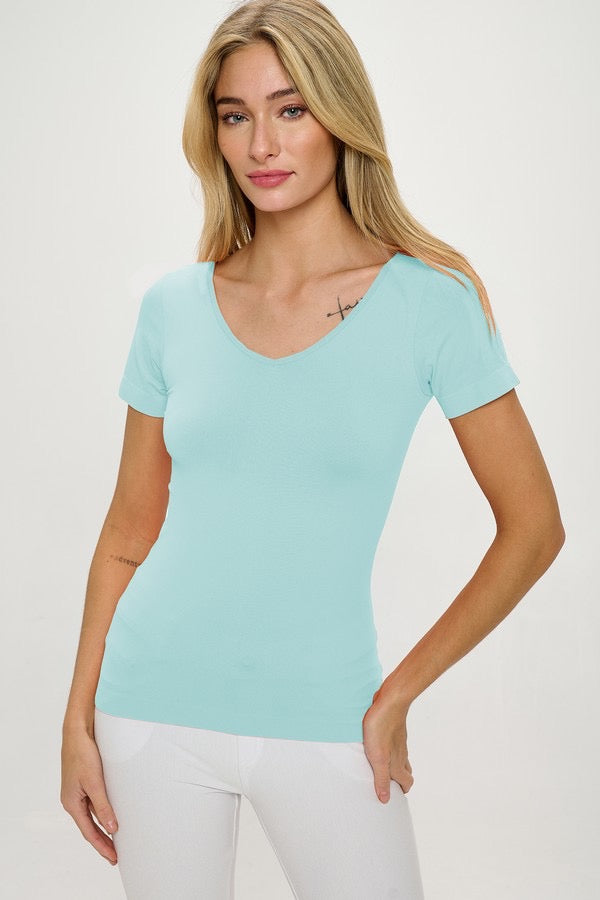 Yelete Seamless Reversible V-Neck Short Sleeve Top